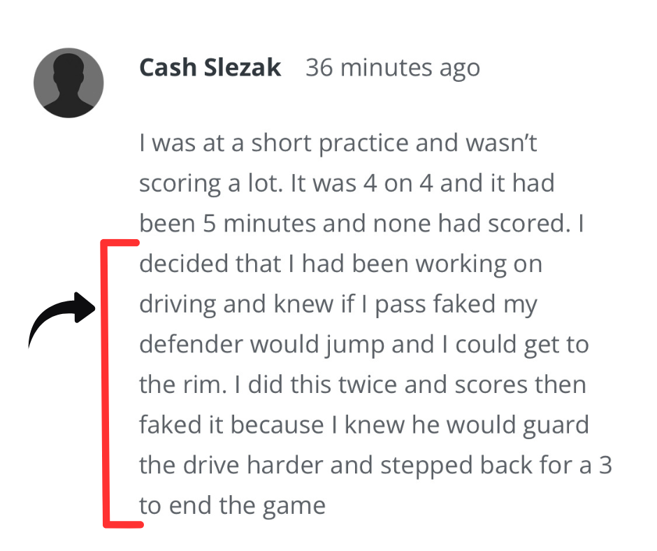 "The biggest key takeaway is understanding decision-making...I was playing recently actually and my IQ has started to get a lot higher...I recently got a lot better at 45 cutting and I'm getting easy layups now...I wasn't doing this a year ago."